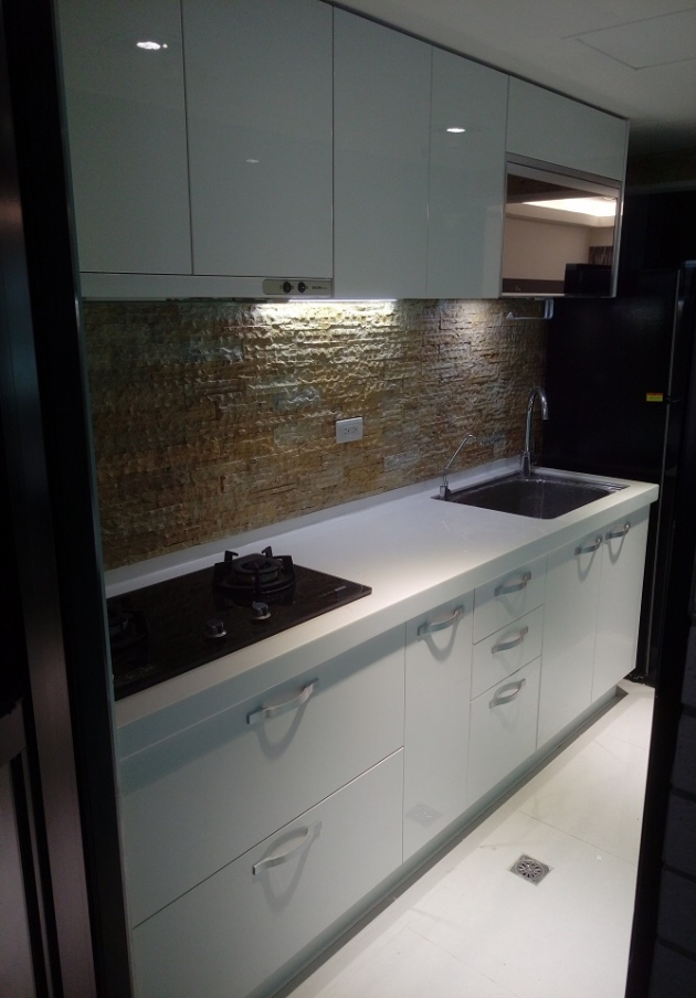 (1)檯面:韓國進口人造石檯面+高級不鏽鋼多功能下崁水槽