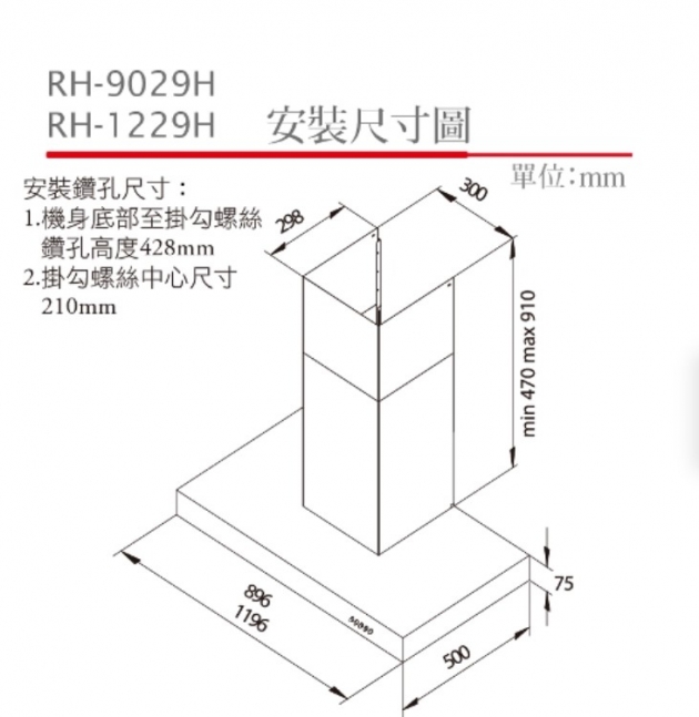 【永勝廚具】林內RH-9029H/RH-1229倒T型排油煙機(高速馬達)