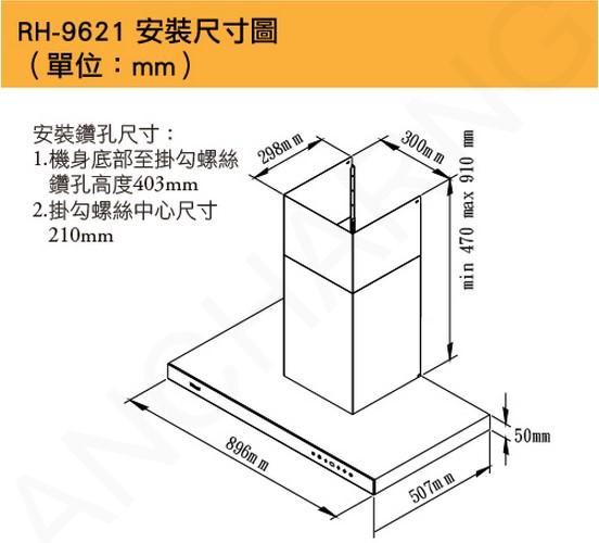 【永勝廚具】RH-9120觸控式倒T型排油煙機(現金優惠,送基本安裝)