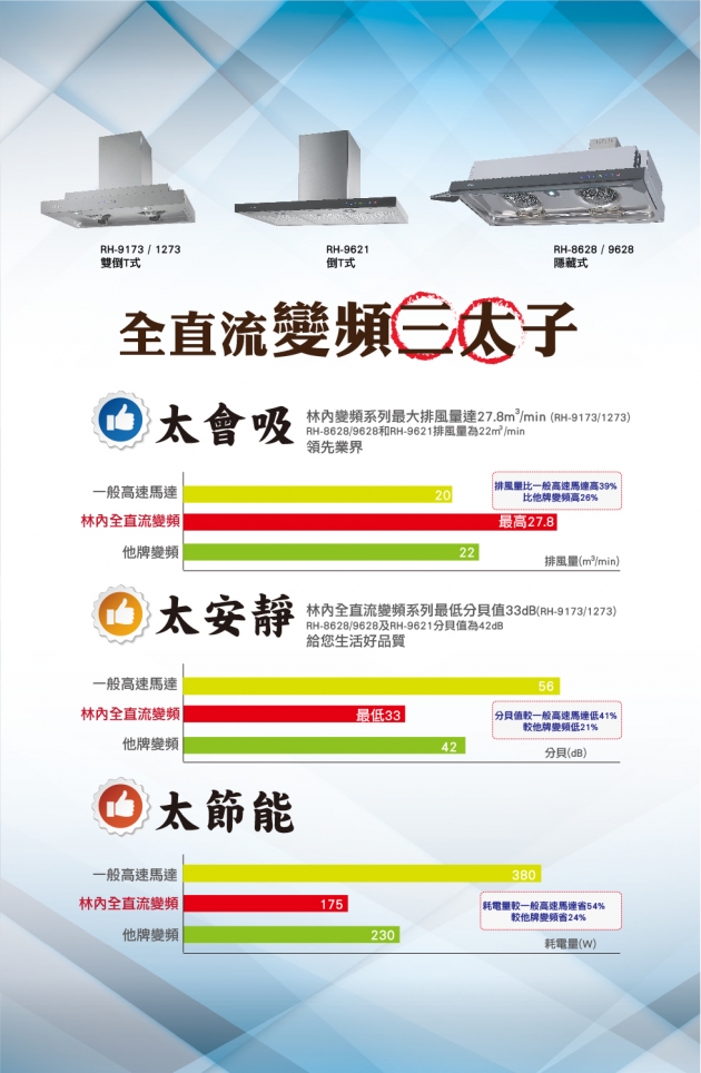 【永勝廚具】林內RH-9173/RH-1273全直流變頻雙倒T式排油煙機(90cm/120cm)現金價,送基本安裝