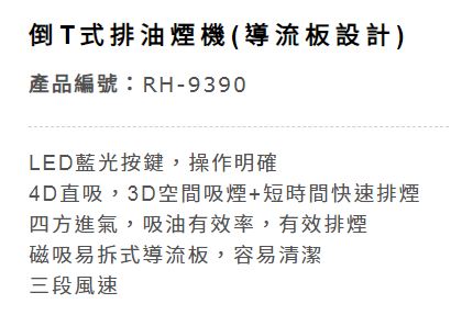 【永勝廚具】林內牌 RH-9390 4D直吸倒T式排油煙機(新品特價,送基本安裝)