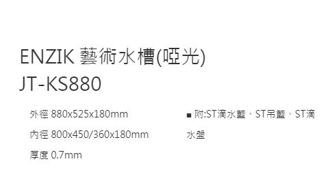 【永勝廚具】韓國ENZIK啞光KS880藝術大單槽