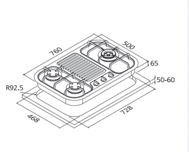 挖孔尺寸(mm) 728×468×R92.5