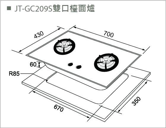 【永勝廚具】喜特麗JT-GC209S-雙口不鏽鋼檯面爐(防漏爐頭)2級節能 |
