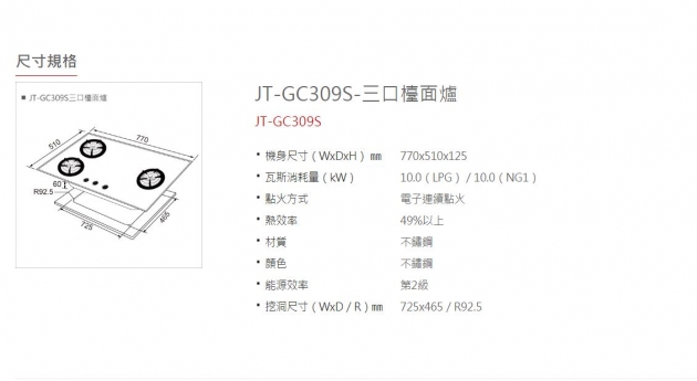 【永勝廚具】喜特麗-GC309S-三口檯面爐(只做右大)2級節能