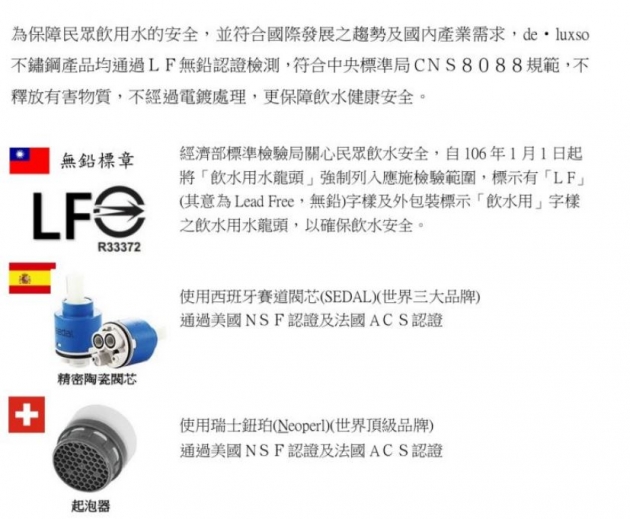 永勝廚具-DF-7611ST不鏽鋼無鉛三用水龍頭,採用西班牙賽道閥芯(SEDAL)堅固、耐用