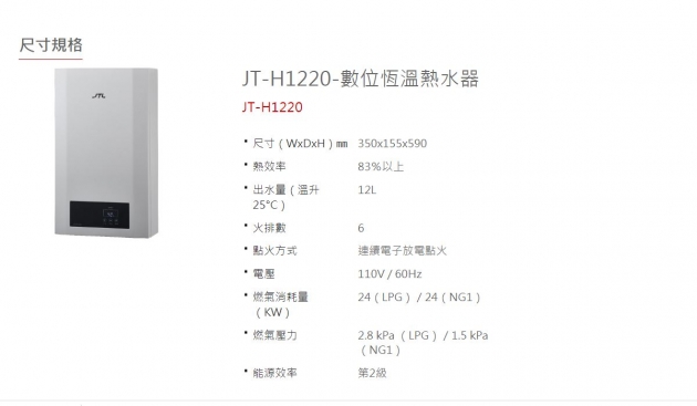 |  | 喜特麗JT-H1220數位12公升恆溫熱水器/公寓型專用/專案特價.送基本安裝 |