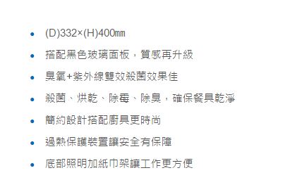 殺菌、烘乾、除霉、除臭,確保餐具乾淨。