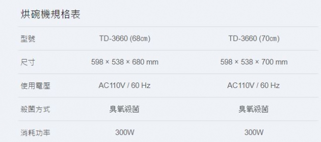 【永勝廚具】TD-3660 臭氧殺菌落地烘碗機(高70cm/68cm)現金享優惠