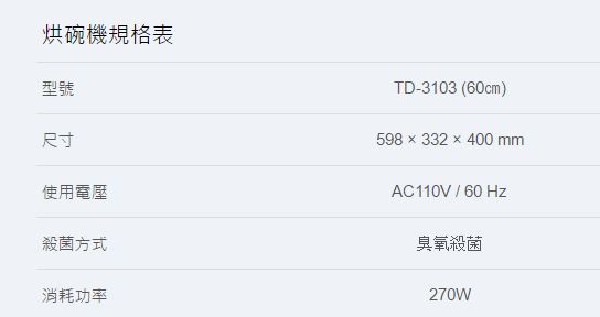【永勝廚具】莊頭北TD-3103 (60㎝)臭氧殺菌烘碗機(迷你小宅系列)