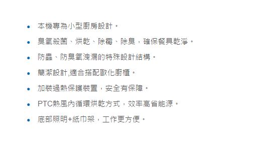 臭氧殺菌、烘乾、除霉、除臭,確保餐具乾淨。