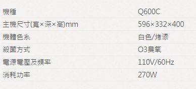 【永勝廚具】櫻花Q-600CW懸吊式60cm臭氧殺菌,觸控式烘碗機,來電現金優惠