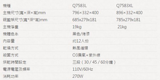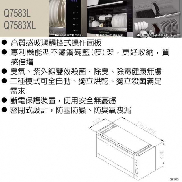 永勝廚具-櫻花牌Q-7583L/Q-7583XL觸控式雙效殺菌烘碗機(來電現金優惠,送安裝)