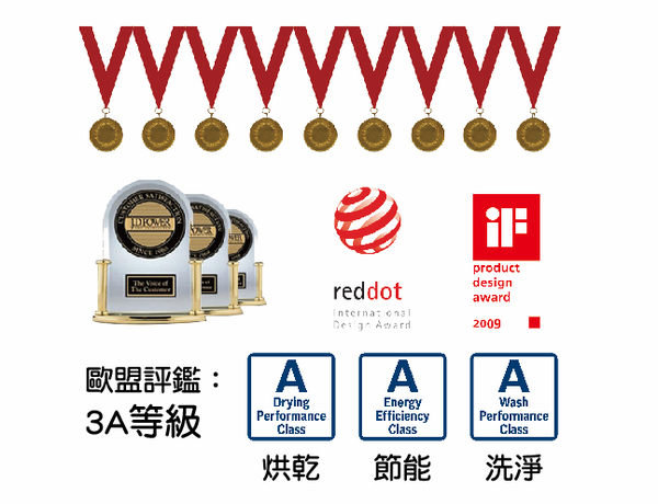 經濟洗程 50 °C、一般洗程 65 °C、強力洗程 70 °C。