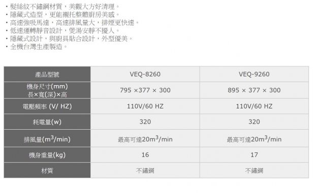 【永勝廚具】豪山VEQ-8260/9260整機不鏽鋼 (最新精品)20米渦輪增壓,加速排煙