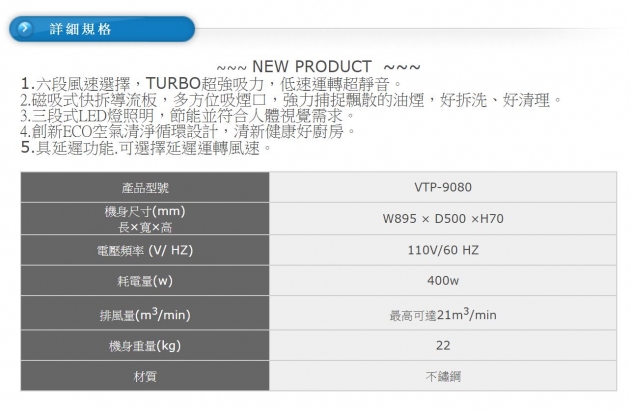 【永勝廚具】豪山VTP-9080 (最新精品,TURBO六段式超強排煙)基本安裝