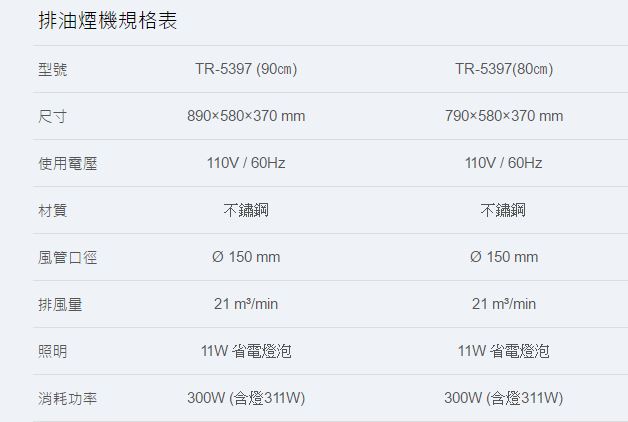 【永勝廚具】莊頭北TR-5301H(80/90)加速排煙+電熱除油