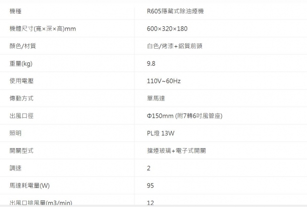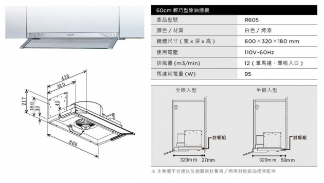 【永勝廚具】櫻花牌605套房專用,輕巧型除油煙機(半/全隱藏式) (白色琺朗)