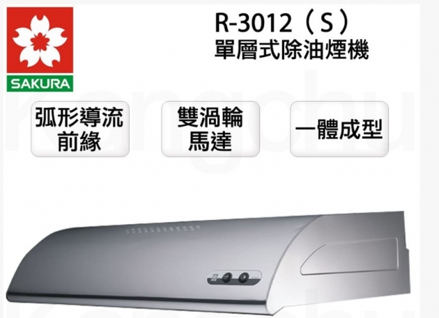 【永勝廚具】櫻花R-3012S標準型(70/80/90)不鏽鋼雙馬達奈米除油煙機(台灣製造.優良品牌)現金價,送基本安裝
