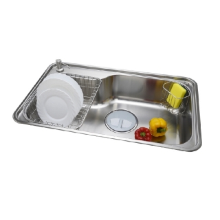 不鏽鋼材質,表面以珍珠啞光處理,媲美進口品質。 不鏽鋼材質,厚度1.0mm高硬度耐磨性佳。 水槽深度深,容量大;底部防潮消音處理。 專利大提籠設計,底部可拆卸、拆裝容易,清洗方便