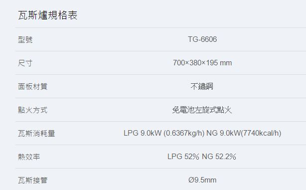 【永勝廚具】莊頭北TG-6603雙內焰安全瓦斯爐,送基本安裝/2級節能