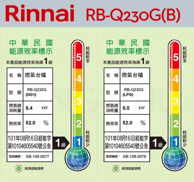 【永勝廚具】林內RB-202GH檯面式,防漏爐頭二口爐,2級節能 ,黑玻/白玻