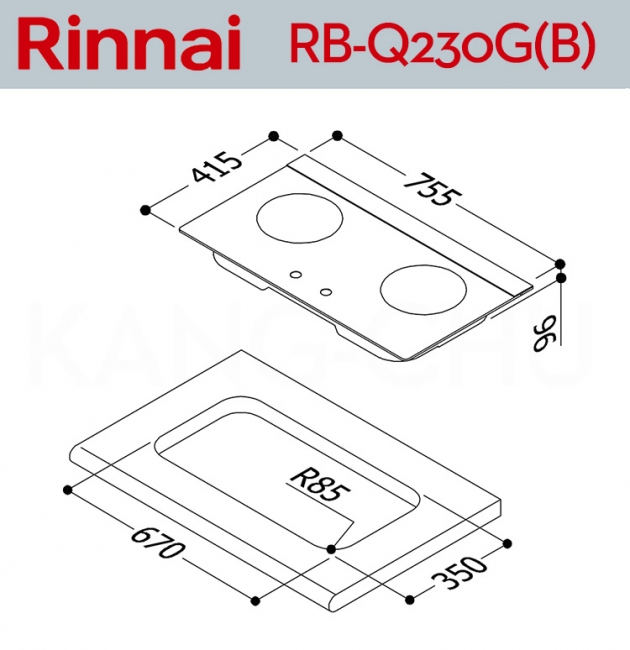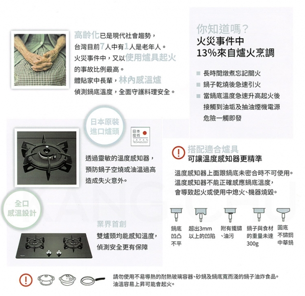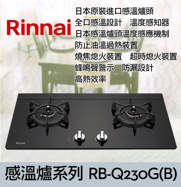 【永勝廚具】林內RB-Q230G 雙邊防乾燒感溫型強化玻璃檯面式二口瓦斯爐(現金特價,送安裝)日本原裝日本原裝爐頭感溫爐頭,1級節能