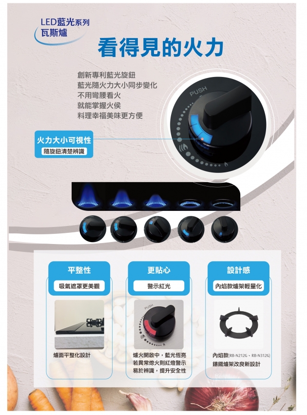 警示紅光設計,異常熄火紅燈顯示,提升安全性