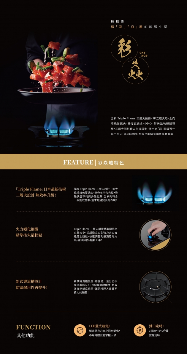 林內RB-L3710G(B)檯面式彩焱玻璃三口爐/可選左大或又大/