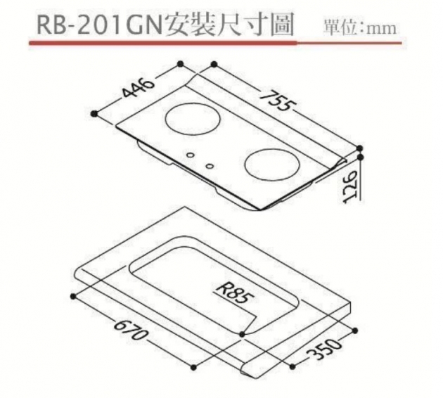 【永勝廚具】林內 RB-201GN(B) 強化玻璃檯面式 內焰二口瓦斯爐 (送基本安裝)1級節能