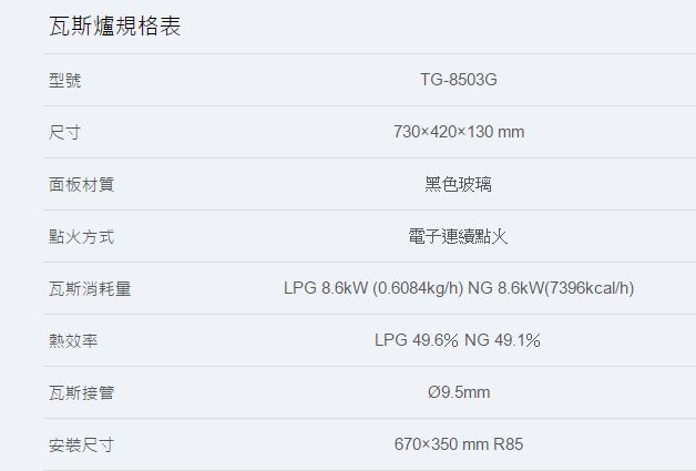 【永勝廚具】莊頭北TG-8503G高熱效,二級節能玻璃防漏爐頭檯面爐,現金特價,送安裝/2級節能