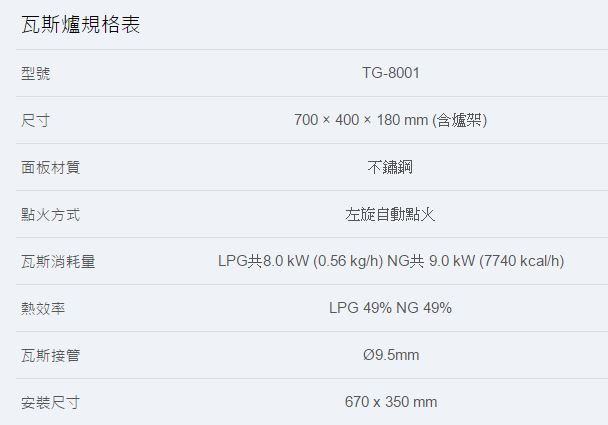 【永勝廚具】莊頭北TG8501S高熱效不鏽鋼檯面式瓦斯爐(現金特價.送安裝)