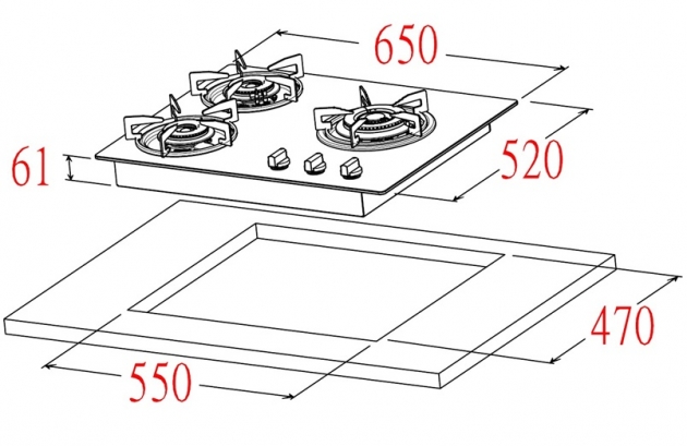 ● 挖孔尺寸:W550 x D470 mm