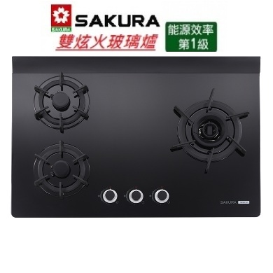 【永勝廚具】櫻花 G2633G 三口節能玻璃檯面爐,現金優惠,可選左大/右大,2級節能