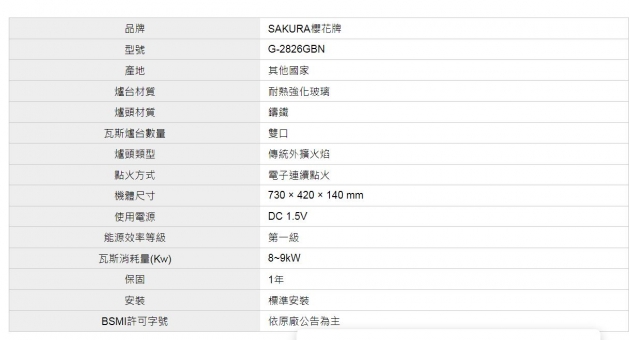 【永勝廚具】櫻花G2826G高效能蓮花火燄安全爐,送基本安裝,1級節能
