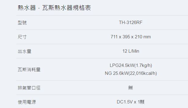 【永勝廚具】莊頭北TH-3126RF-12L屋外大廈型熱水器(台灣製造.優 良品牌)(特價.送基本安裝)