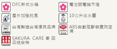 OFC新式水箱電池弱電指示燈屋外加強抗風10公升出水量台灣製造台灣優良品牌ABS自動阻斷裝置防空燒SAKURA CARE寄回函送安檢