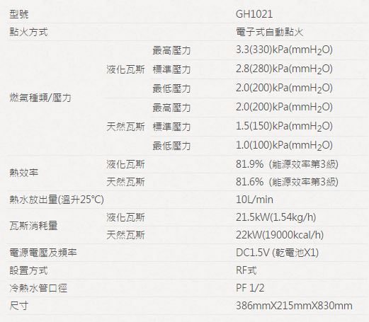 【永勝廚具】櫻花GH1021加強抗風熱水器(台灣製造.優良品牌)無氧銅新式水箱