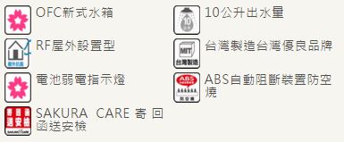 OFC新式水箱10公升出水量RF屋外設置型台灣製造台灣優良品牌電池弱電指示燈ABS自動阻斷裝置防空燒SAKURA CARE寄回函送安檢