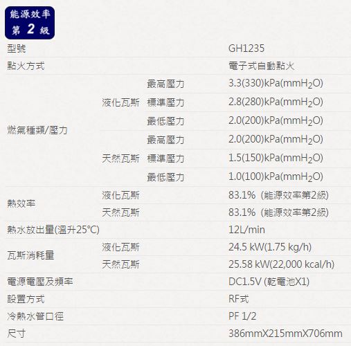 【永勝廚具】櫻花GH1235大廈專用12L熱水器(台灣製造.優良品牌)送基本安裝