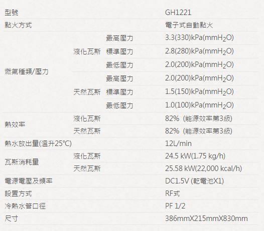 【永勝廚具】櫻花GH1221*12L大廈加強抗風熱水器(台灣製造.優良品牌)送基本安裝