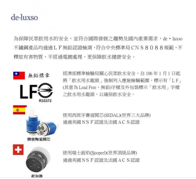 永勝廚具-DF-7611ST不鏽鋼無鉛三用水龍頭,採用西班牙賽道閥芯(SEDAL)堅固、耐用