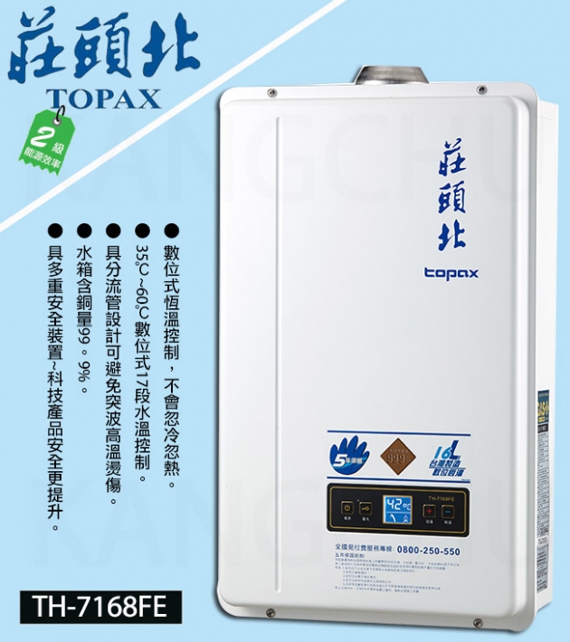 【永勝廚具】莊頭北TH-7168FE智能恆溫16L強制排氣熱水器,新機專案特價/送基本安裝 |
