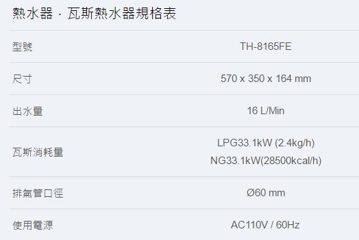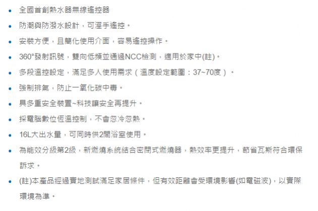 【永勝廚具】莊頭北TH-8165FE無線遙控數位恆溫16L熱水器(送基本安裝)台灣製造 |