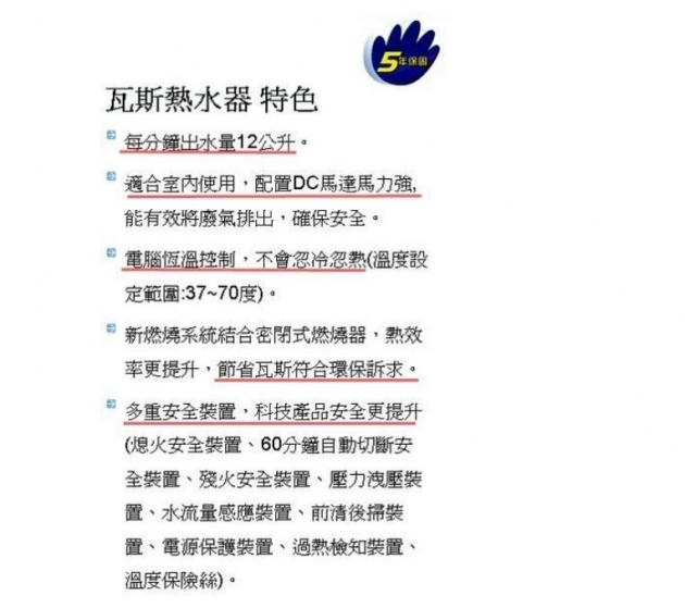 注意:瓦斯熱水器須由合格『特定瓦斯器具裝修技術士』安裝,