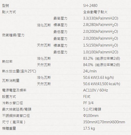 【永勝廚具】櫻花SH-2480屋內型數位精品熱水器24L))(日本原裝進口-按摩浴缸/多隻龍頭專用)來電現金優惠,送基本安裝,基本管材(全機三年保固)排氣管直徑8公分