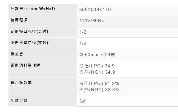 注意:瓦斯熱水器須由合格『特定瓦斯器具裝修技術士』安裝,