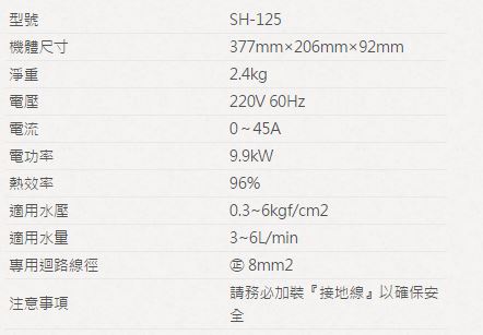【永勝廚具】櫻花 SH-*125*瞬熱式數位恆溫電熱水器(220V)送基本安裝
