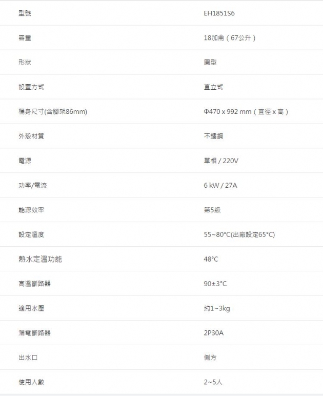 永勝廚具-櫻花EH2651S6倍容26加侖定溫熱水器