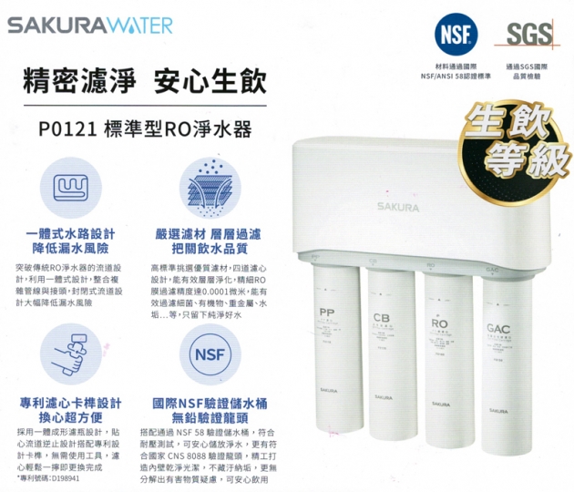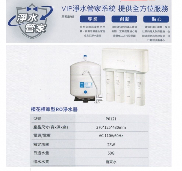 【永勝廚具】櫻花P0121標準型RO淨水器(送基本安裝)